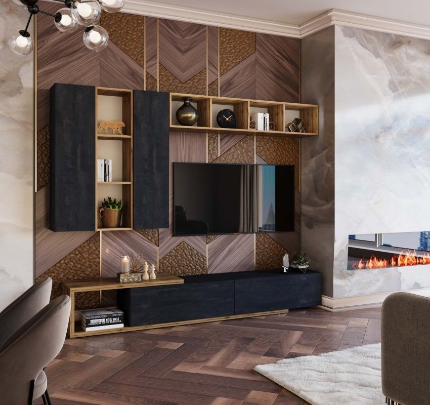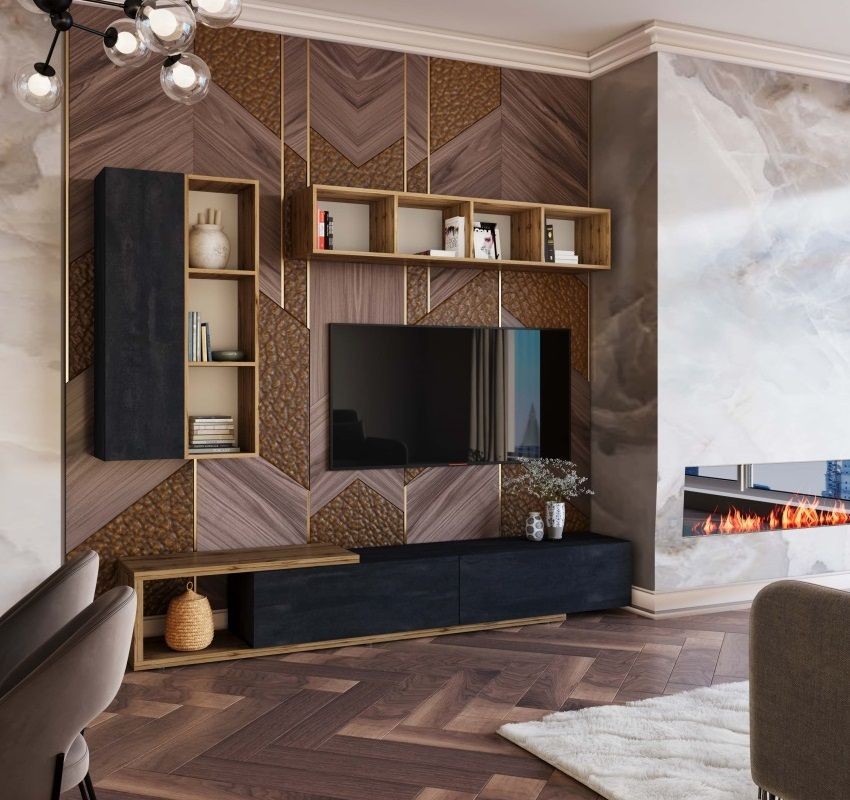 ХЛОЯ Гостиная (Дуб Вотан/Обсидиан) модульная