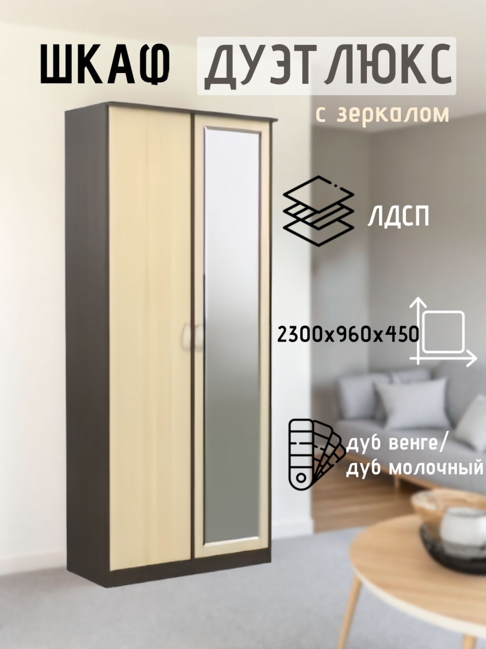 Шкаф 2-х створчатый «Дуэт Люкс» с зеркалом