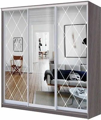 Фасад: 1 дверь Зеркало + 2 двери Зеркало с пескоструйной обработкой
