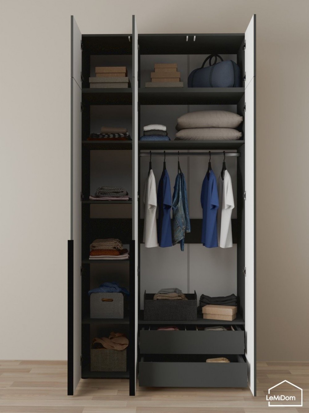 Шкаф с антресолью Linnea MHR-3A-2 2450х1200х510 (Графит-М 11.1.25)